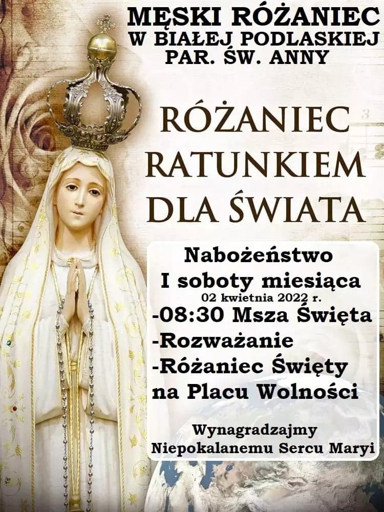 Każda pierwsza sobota miesiąca 8:30 w kościele św. Anny.