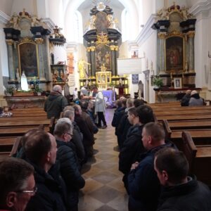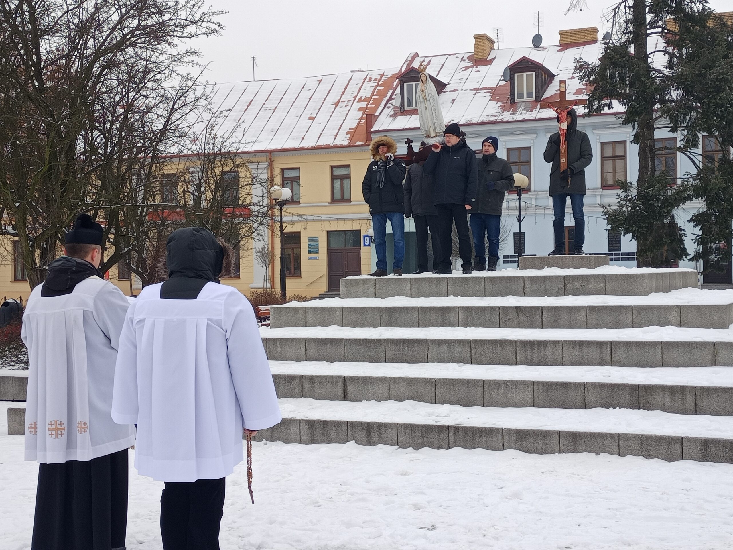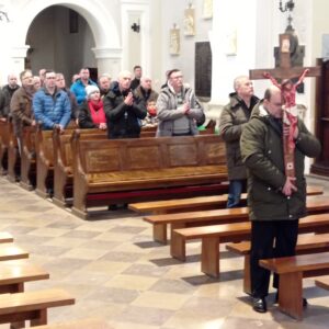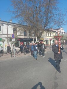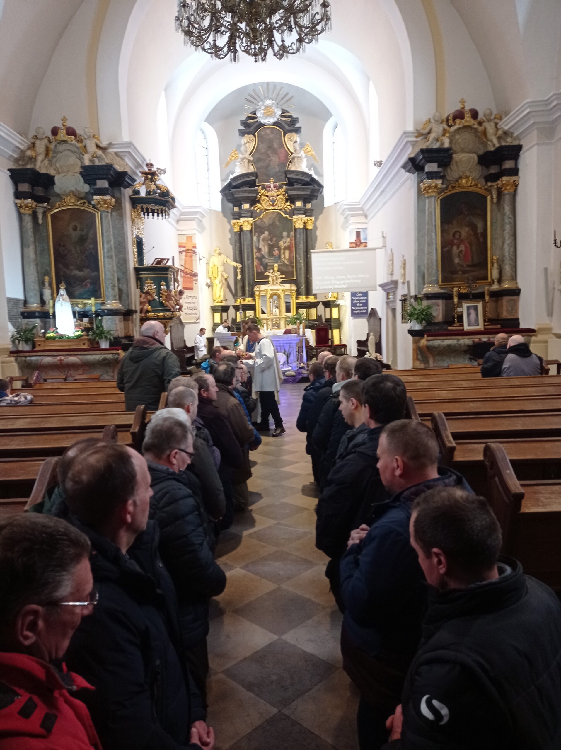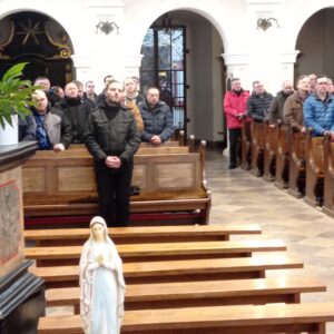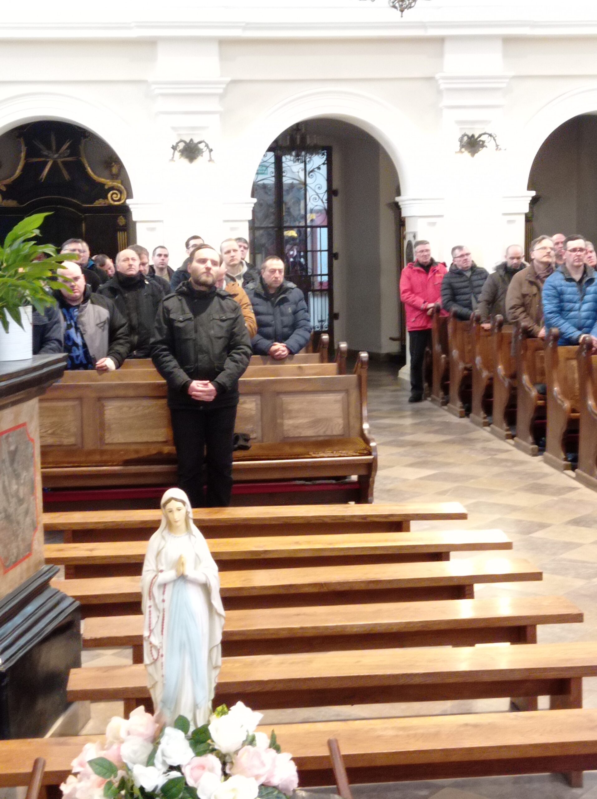 Po dłuższej przerwie wznowiliśmy nasz Męski Różaniec . W pierwszą sobotę, w kościele św. Anny w Białej Podlaskiej rozpoczęliśmy o 7:00 Mszą Świętą , 15 minutowe rozważanie a potem wyruszliśmy na plac Wolności aby modlić się częścią Różańca Świętego
