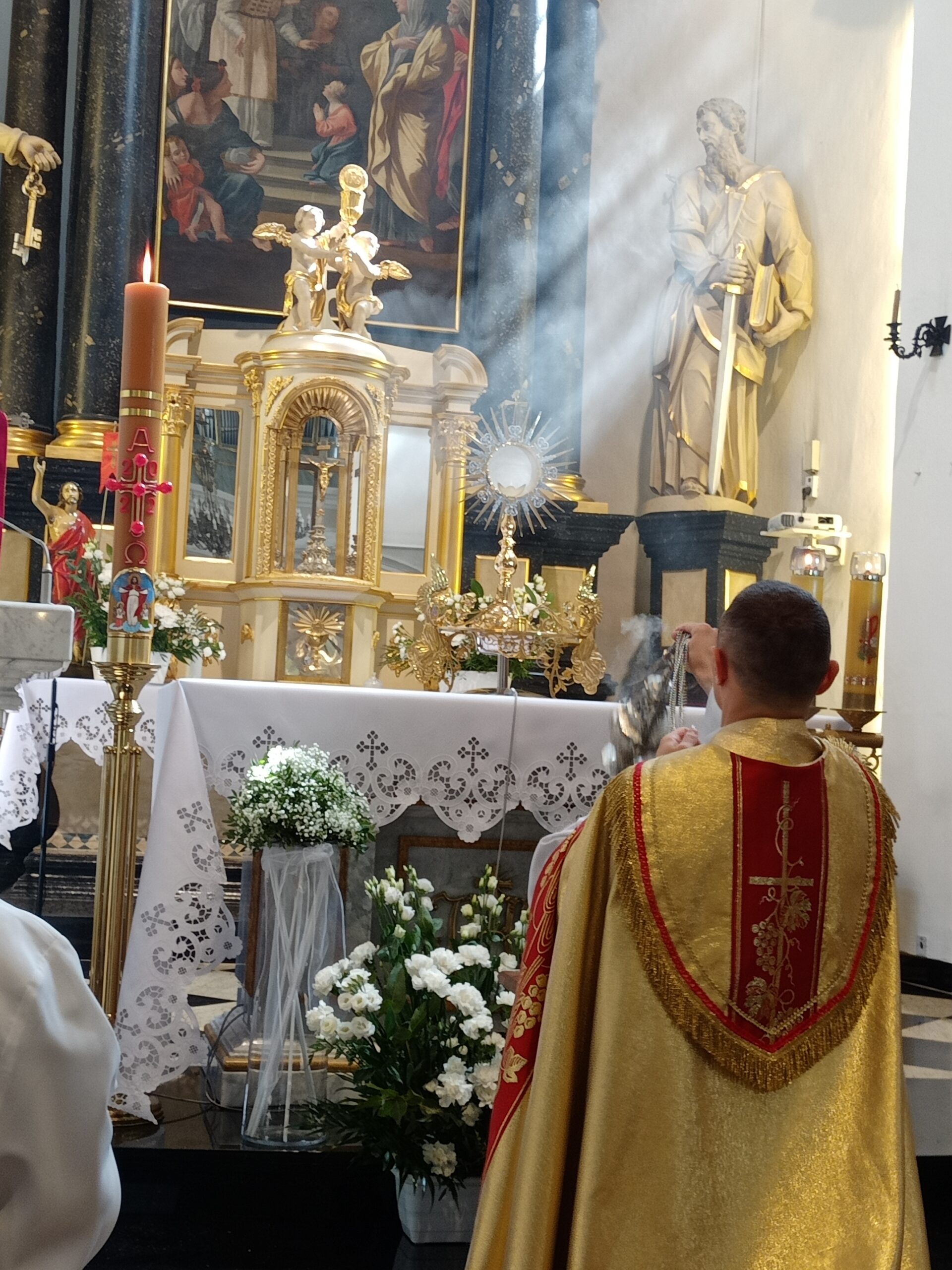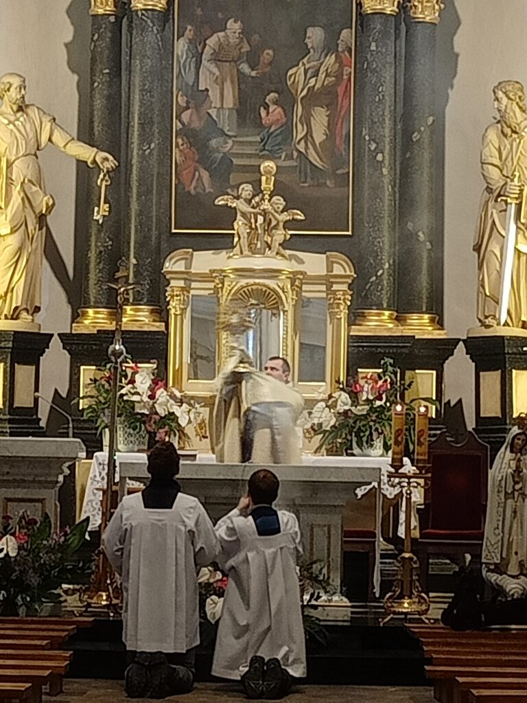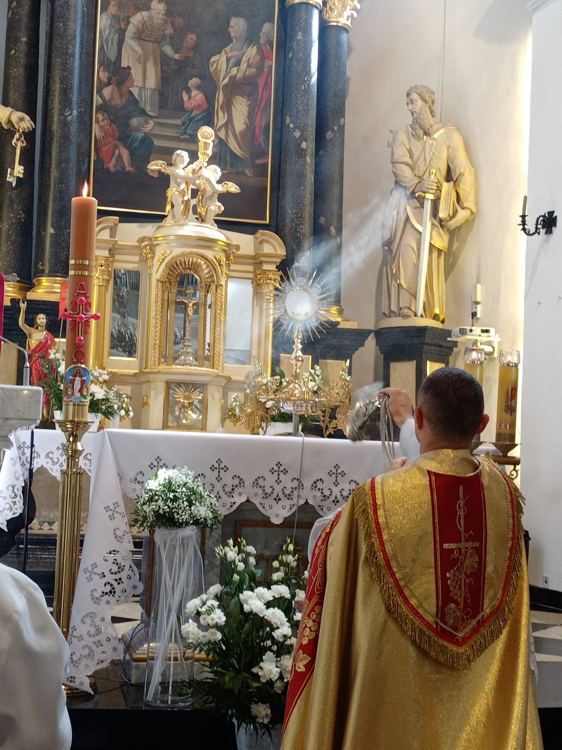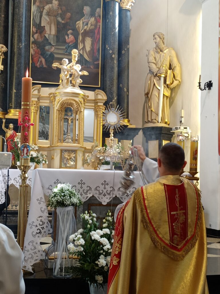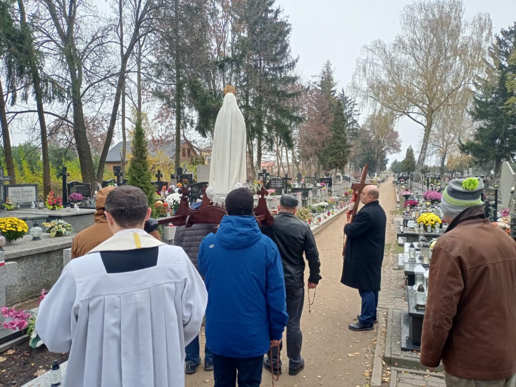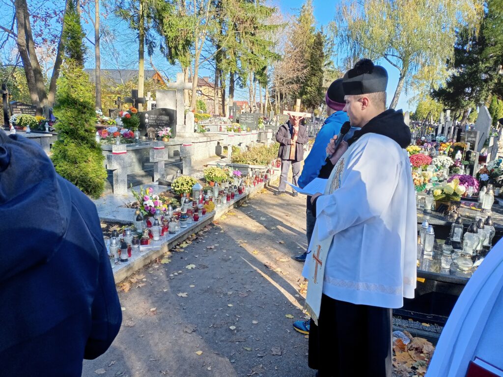 Po Mszy świętej i 15minutowym rozważaniu poszliśmy z procesją na cmentarz aby ofiarować odpust za zmarłych. Modlitwą obejmowaliśmy zmarłych proboszczów i innych kapłanów oraz żołnierzy poległych w obronie naszej Ojczyzny.