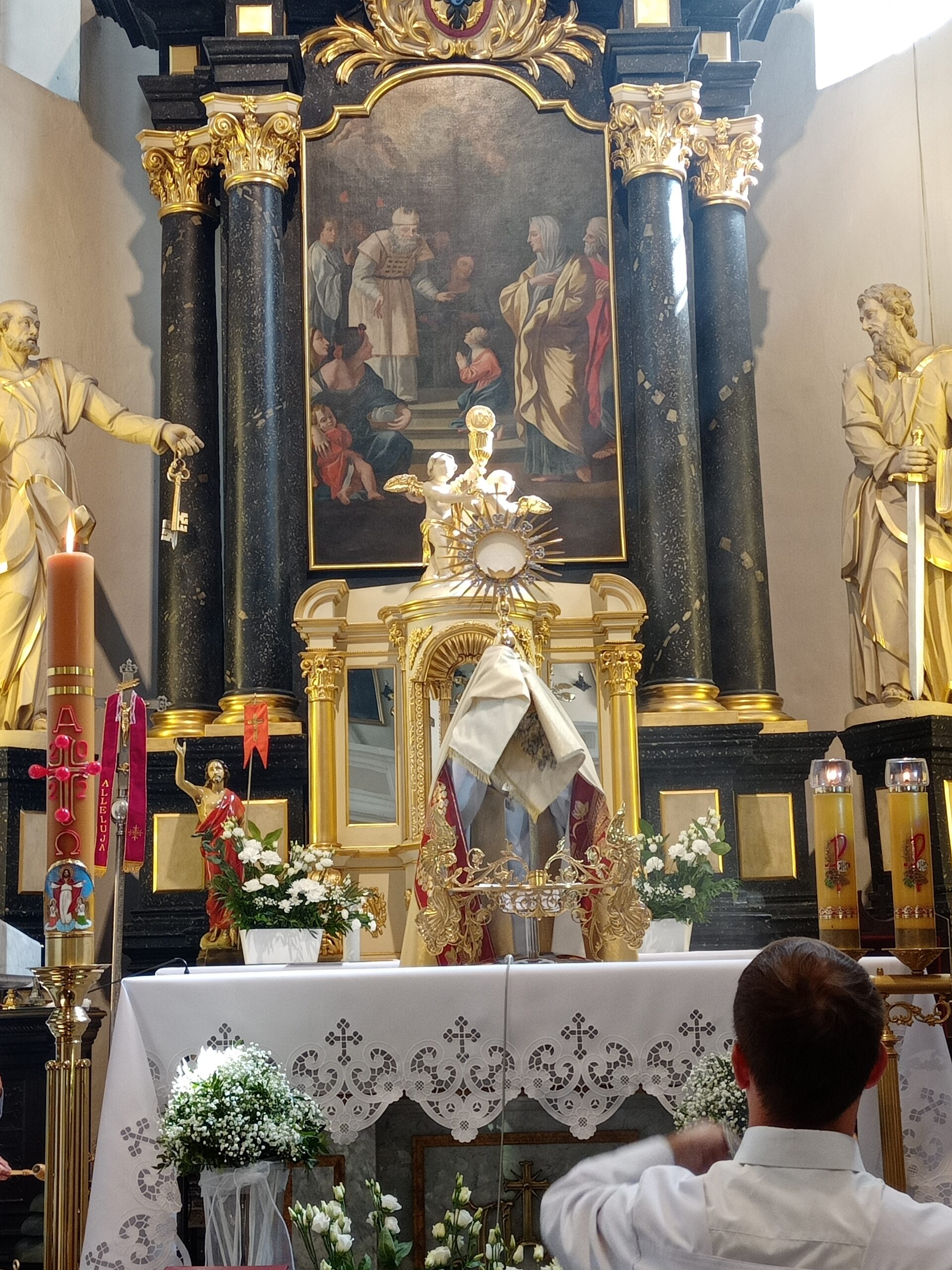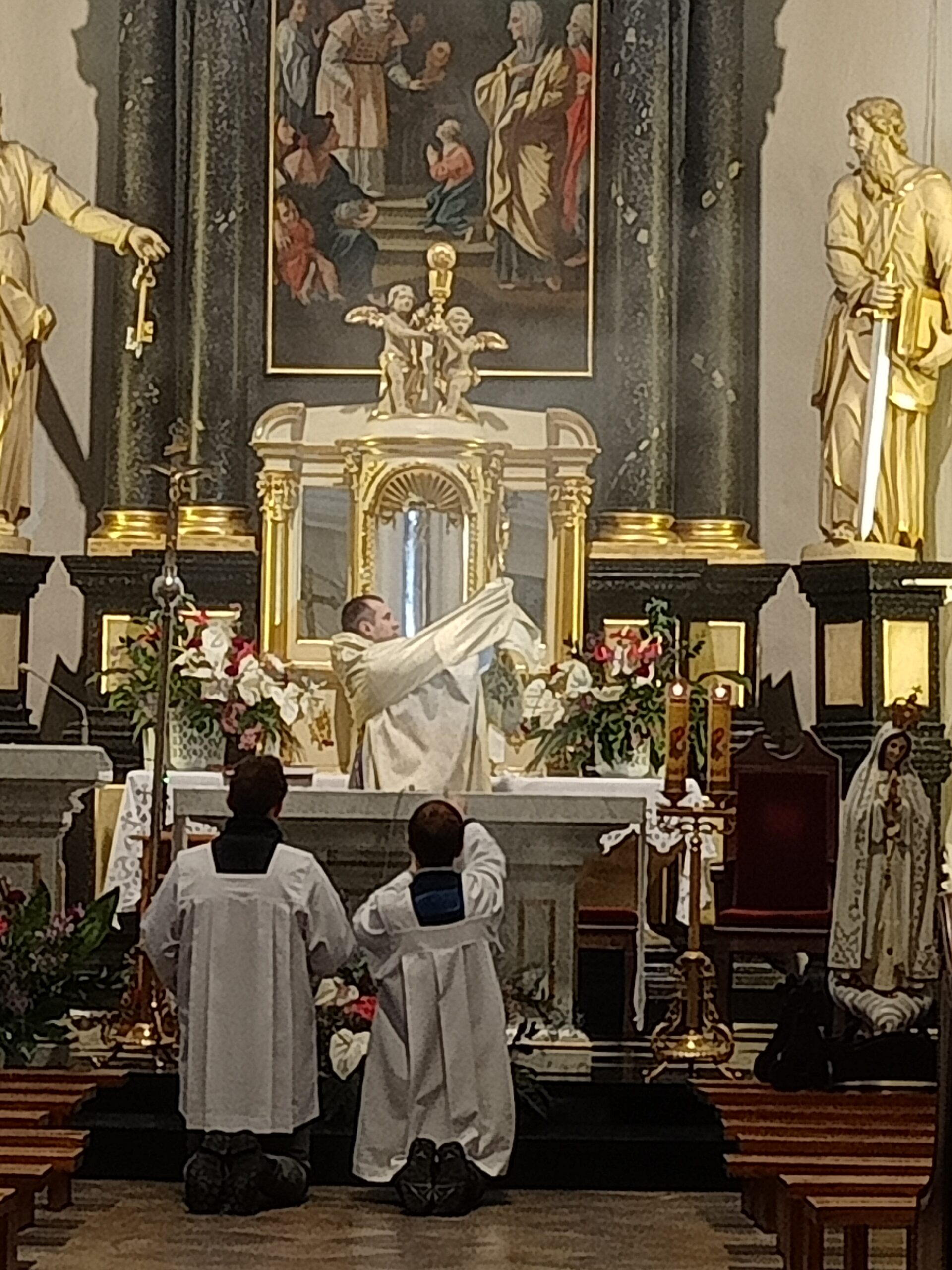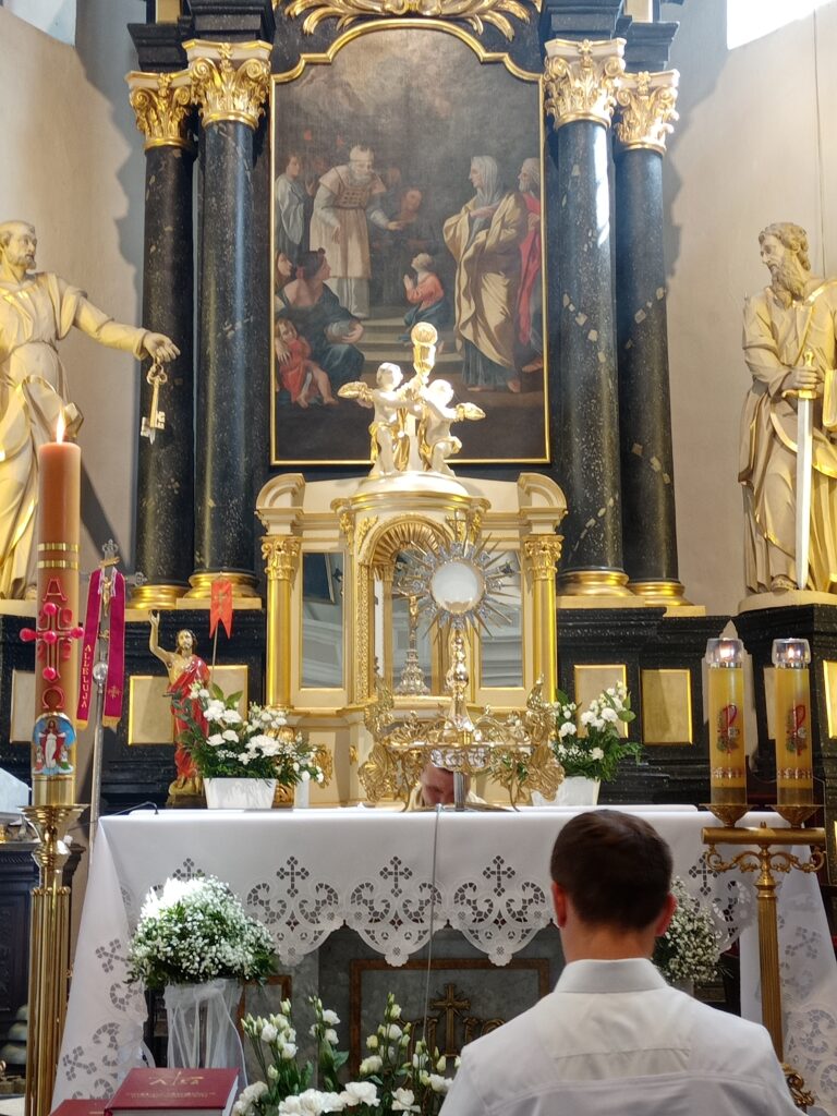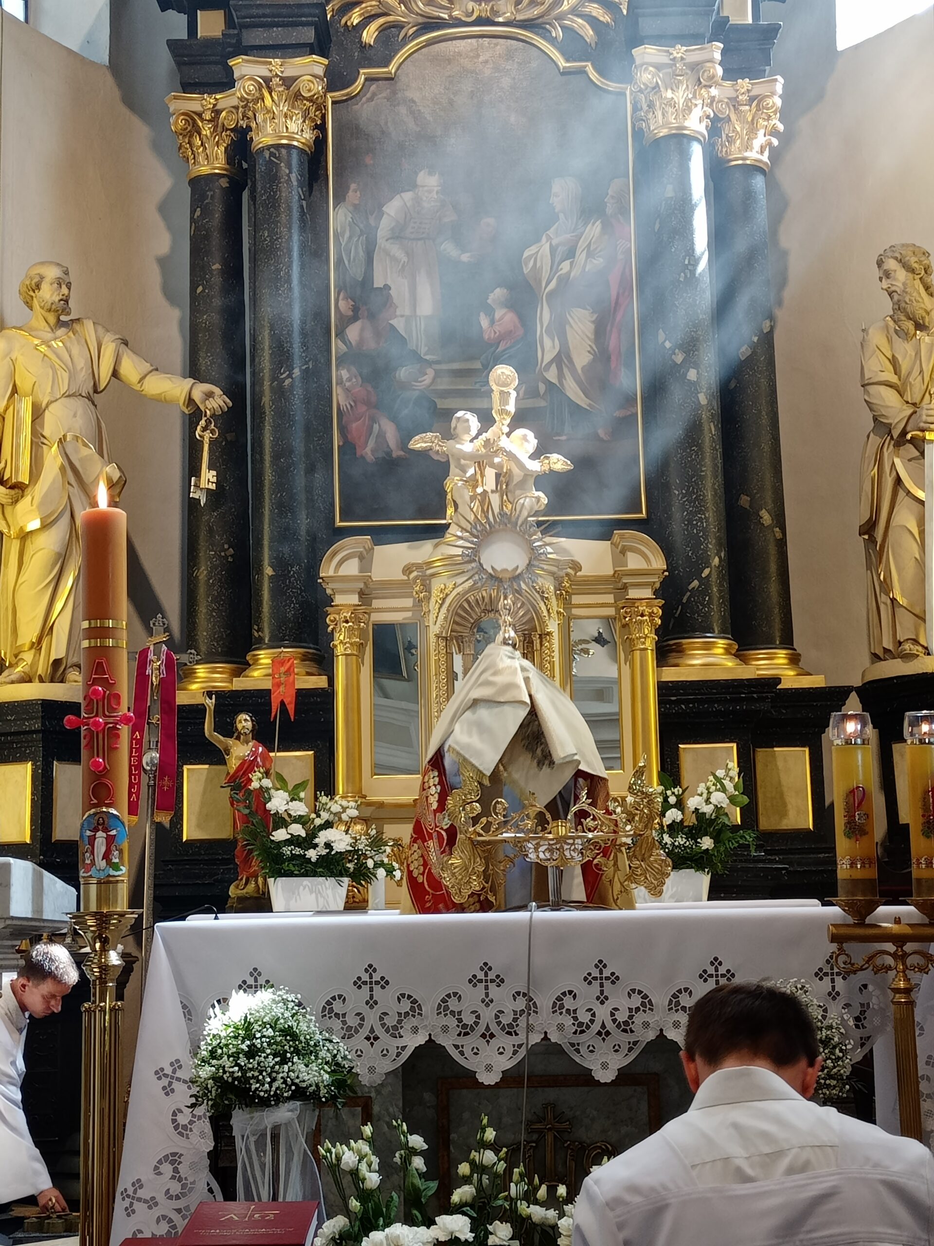 Po Mszy świętej i 15minutowym rozważaniu poszliśmy z procesją na cmentarz aby ofiarować odpust za zmarłych. Modlitwą obejmowaliśmy zmarłych proboszczów i innych kapłanów oraz żołnierzy poległych w obronie naszej Ojczyzny.